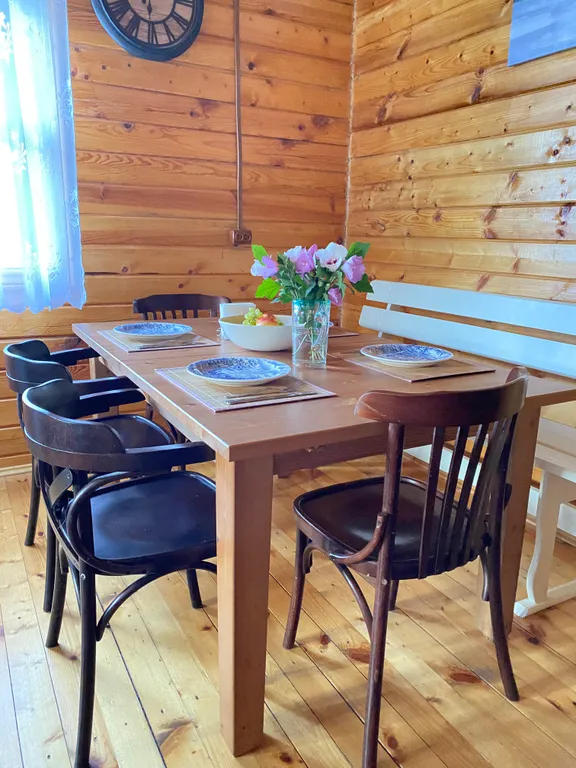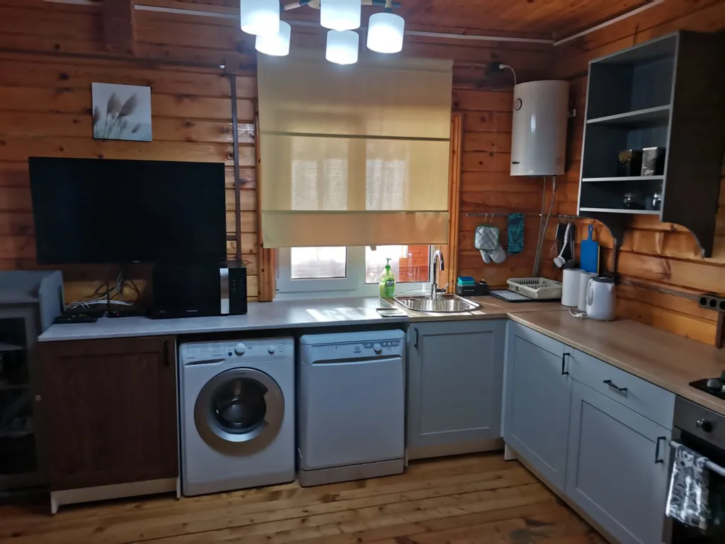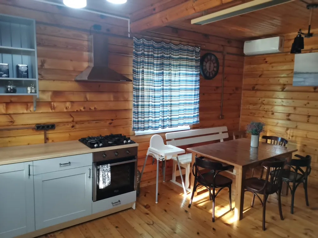 1 этаж: веранда, санузел, спальня (2 односпальных кровати) и кухня-гостиная (2 местный диван-кровать).