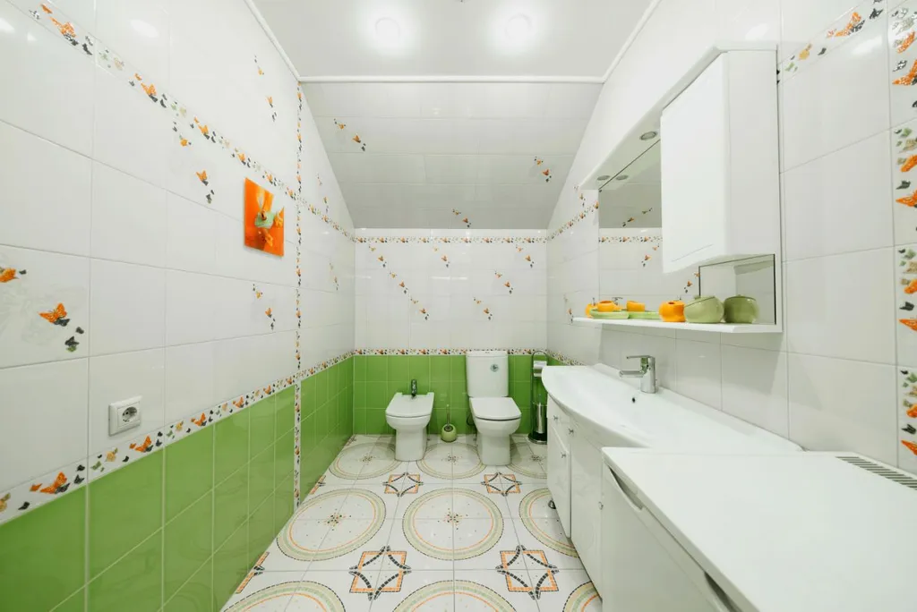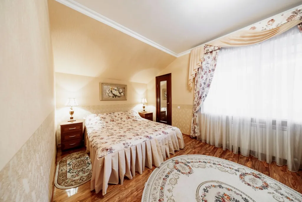 В доме 2 этажа - 2 спальни, на первом этаже большой раскладной диван, кухня, ванная комната и 2 сан. узла. Открытая планировка гостиной.
