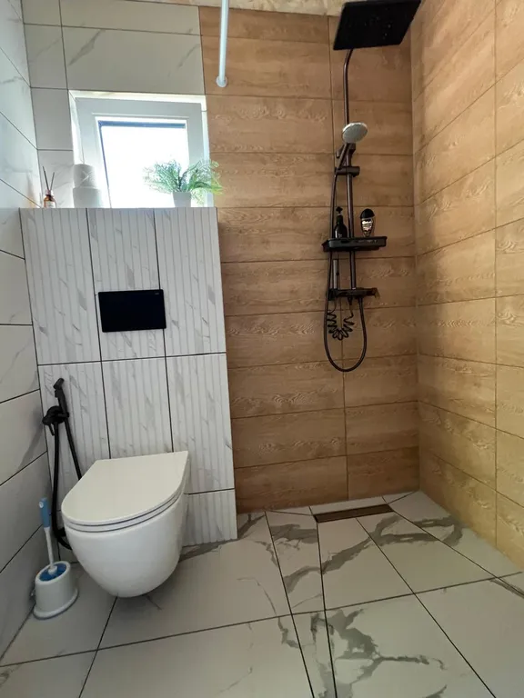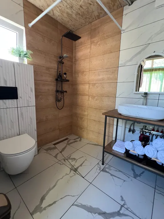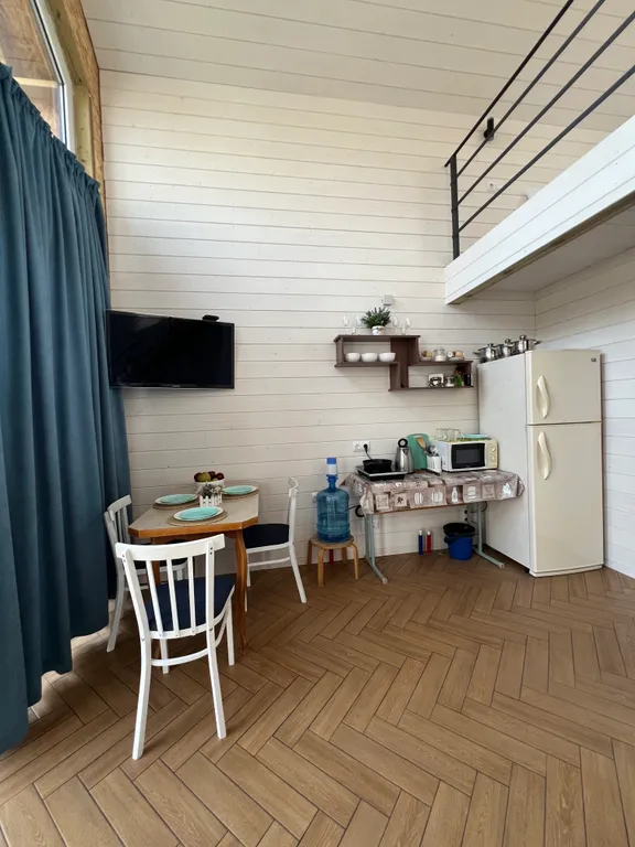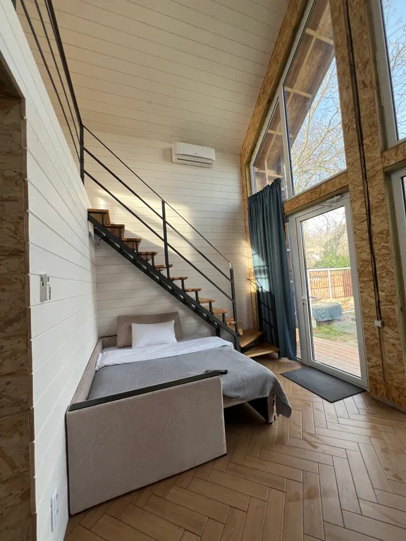 Домик отапливается (теплый пол)