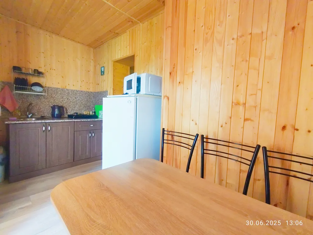 Однокомнатный одноэтажный домик со своей кухней, санузлом и террасой для отдыха.