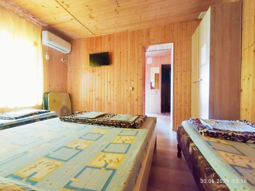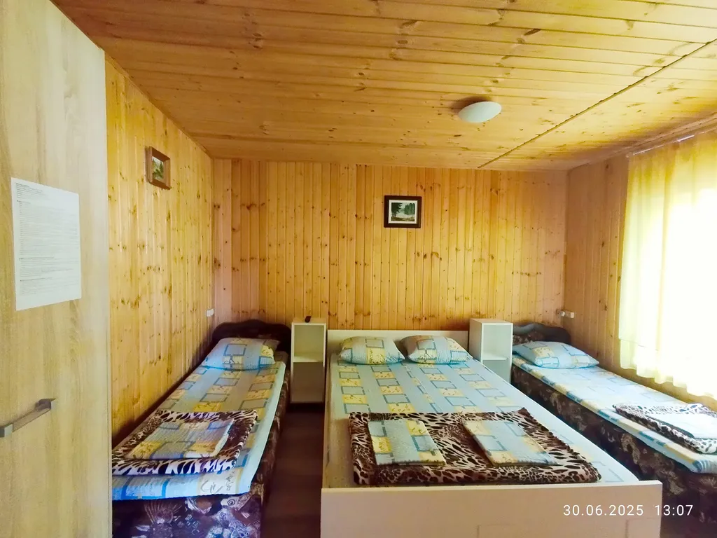 Спальные места - одна двухспальная кровать, две односпальные кровати, дополнительное место-раскладушка.