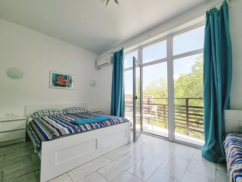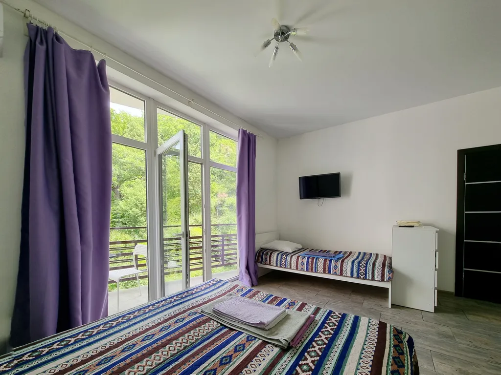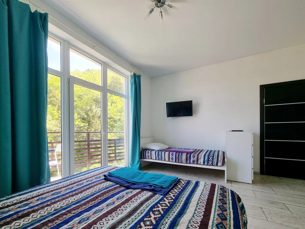 Комфортные трёхместные номера-апартаменты европейского уровня с индивидуальным санузлом оснащены мини-кухней, кондиционером, горячей водой, холодильником, телевизором, wi-fi.