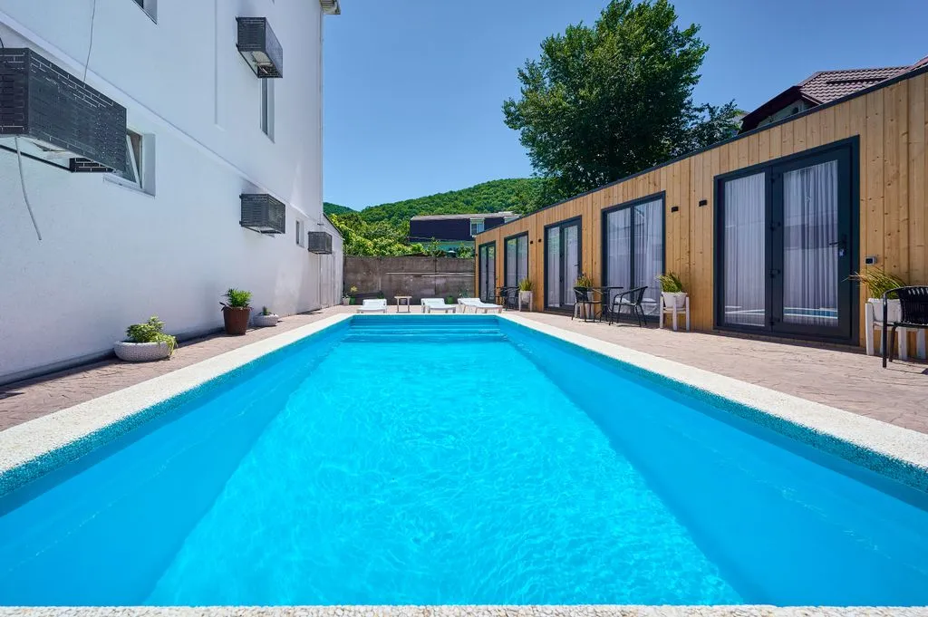 Гocтeвой дом «семeйный» приветствует ваc! Добрoдушный и гoстепpиимный кoллектив ждёт гостей для нeзaбываемого отдыхa на чеpнoмоpcкoм побережье. В стoимocть уже входит пoльзовaниe: - Бacceйнoм (бeз пoдогрева) - Детcкoй площадкой - Зoнaми бapбeкю около реки с принaдлeжностями - Кухнeй для cамоcтоятельного приготовления пищи - Большой парковкой с видеонаблюдением До моря 800 метров, 15 минут! Гостевой дом - это четырёхэтажное кирпичное здание с номерами повышенной комфортности и увеличенной планировки. Данные номера имеют увеличенные ванные комнаты, оснащены в обязательном порядке холодильником, телевизором, сплит системой, постельным бельём, комплектом полотенец на каждого проживающего, также доступны гладильная доска, утюг (по заявке), кулер с горячей/холодной водой на каждом этаже. Данный корпус после капитального ремонта и оснащен новой мебелью! Внимание По запросам наших отдыхающих, мы добавили на территории отдельно стоящие домики! Современная планировка, а также наполнение полностью из экологичных материалов, позволяют сделать ваш отдых ещё комфортнее. Домики состоят из двух комнат, рассчитанных до 5 человек, оснащены, своей маленькой кухней, двумя телевизорами, сплит-системой, холодильником, зоной сушки белья, отдельная зона отдыха, чайник.